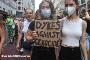 According to the group’s website, the event is not a parade, but is instead a “protest march”; they go on to state that the march is, “a demonstration of [our] First Amendment right to protest and takes place without permits or sponsors.” The cause for which the group marches changes annually– the theme that was chosen for this year’s event was “Dykes Against Genocide”.