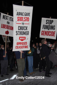Emergency Seder in the Streets to stop arming Israel. protestors line the street near Senate Majority Leader Chuck Schumers home to protest Israel. Over 300 protestors were arrested for blocking traffic