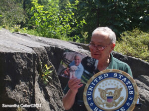 NEW YORK, .STANDING AT TONY BENNETT’S BENCH IN CENTRAL PARK, Senate Majority Leader Chuck SCHUMER ANNOUNCES HE WILL INTRODUCE RESOLUTION TO DECLARE AUGUST 3RD AS “TONY BENNETT DAY”; BELOVED ARTIST FROM QUEENS WAS NEW YORK THROUGH & THROUGH & JUST SHY OF HIS 97TH BIRTHDAY