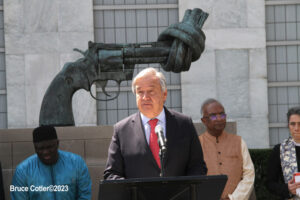 UN Secretary Leads Prayer for Peace in Front of Knotted Gun Sculpture April 15, 2023 presidentnyppa News Photos By: Bruce Cotler New York, New York , United Nations Prayer for Peace event held at the Knotted Gun Sculpture. Antonio Guterres,United Nations Secretary- General New York, United Nations Prayer for Peace event held at the Knotted Gun Sculpture. New York, New York , United Nations Prayer for Peace event held at the Knotted Gun Sculpture. Antonio Guterres,United Nations Secretary- General